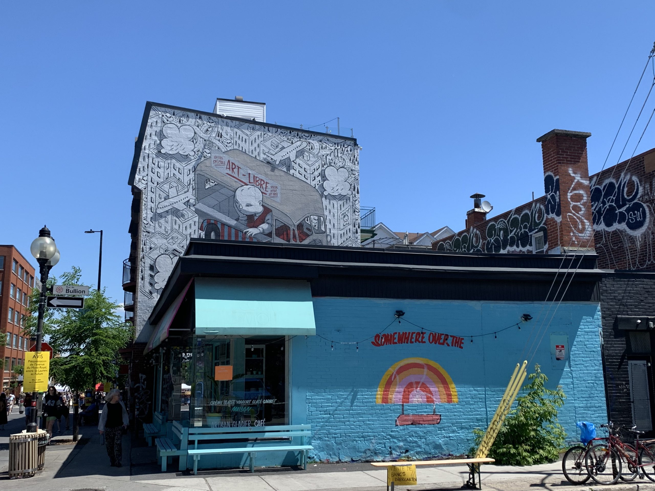 L’Avenue Mont Royal n’est pas la seule rue à bénéficier d’un lifting estival. Pour la saison estivale 2022, le tronçon de l’Avenue Bernard (proche du quartier aux belles demeures victoriennes d’Outremont) – entre la ruelle située à l’est de l’avenue Wiseman et l’avenue Bloomfield – est fermé à la circulation automobile et piétonnisé de nouveau. Comme l’année passée, des aménagements y sont installés, afin, comme l’indique la municipalité, « de créer un espace convivial de rencontre et d’activités ». Ce coup-ci, ça n’est pas durant trois mois que l’avenue est fermée, mais de Juin à Novembre, soit 5 mois pleins sans voitures. Les propriétaires des nombreux cafés, comme le so chic « Café souvenirs » doivent être ravis : leur terrasse est plus spacieuse, mais aussi largement isolée du bruit environnant.