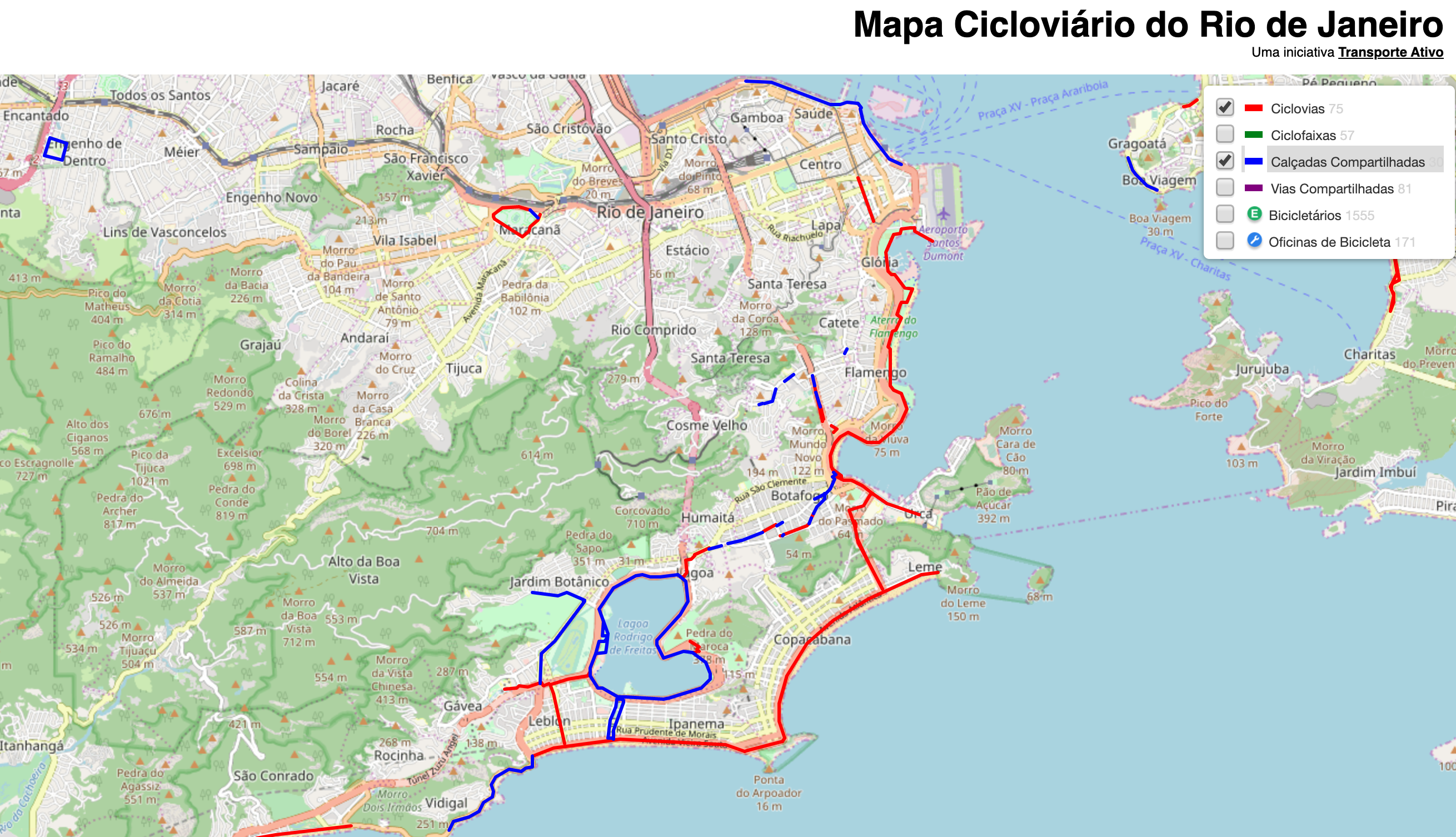 En parlant de périple… J’ai trouvé une super carte du réseau cyclable sur OpenStreetMap. Mon trajet a été facile à imaginer : une piste permet de suivre le littoral, en passant par Copacabana, Ipanema, puis en permettant une incursion vers le Lac Rodrigo de Freitas.