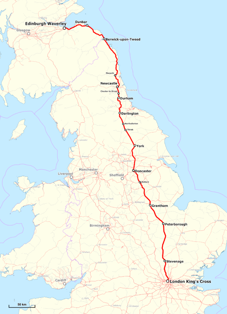 Tisser des liens, c’est finalement cela que l’on demande au train, mais aussi et surtout aux gares. Et une des vocations de celle de Waverley, c’est de jouer un role unique dans l’histoire de l’Ecosse. Car rappelez vous, nous sommes ce matin arrivés de Londres. Notre train a donc emprunté la fameuse East Coast Main Line. Cette dernière permet de rejoindre la gare de King’s Cross à Londres, via notamment Doncaster et Newcastle.