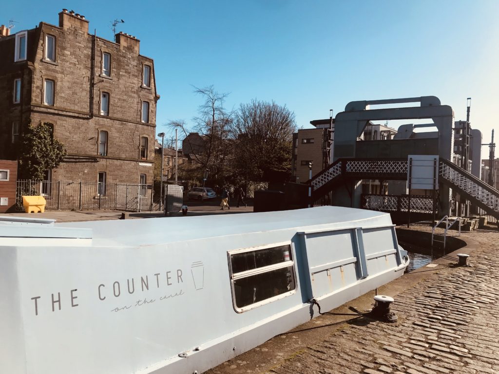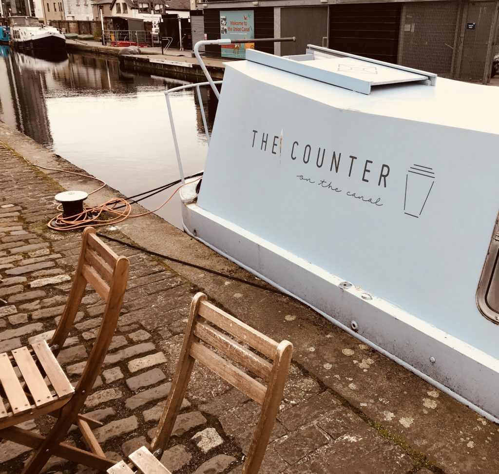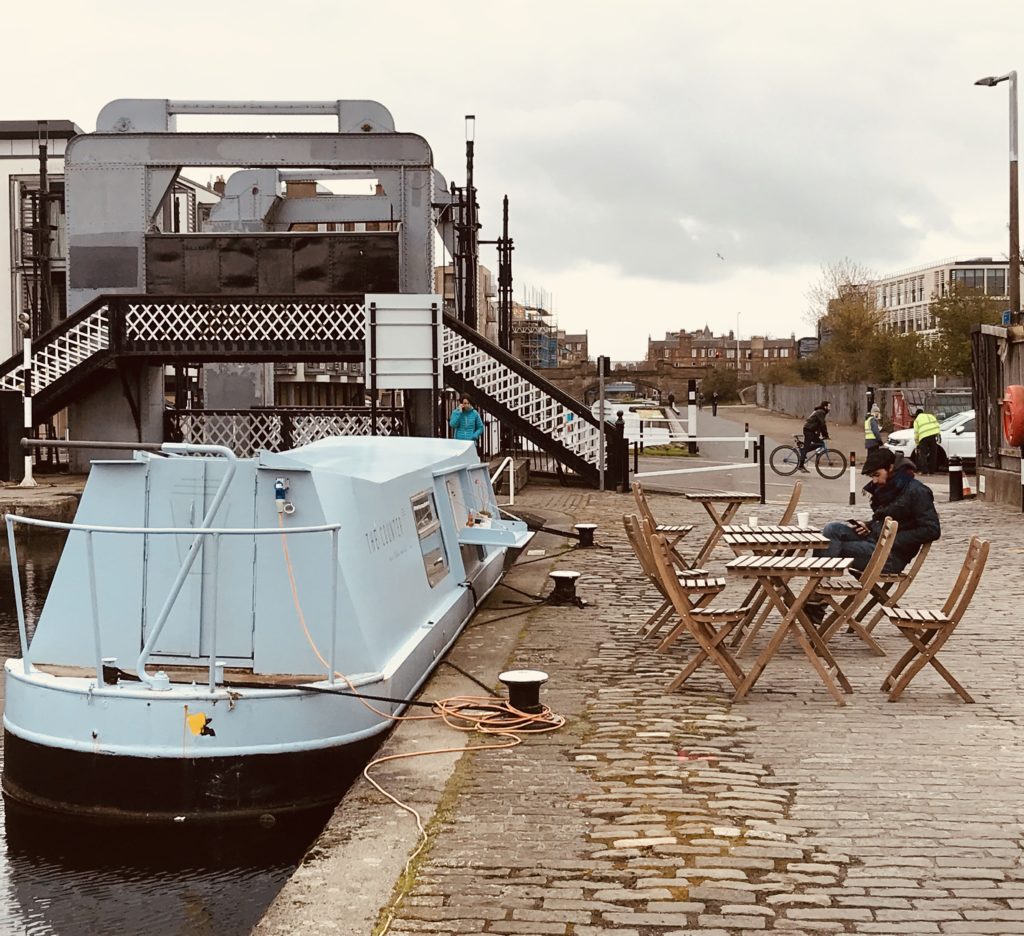 • Autre ambiance, autre balade, toujours depuis la gare, vous pourrez prendre la ligne Lothian Buses n°35, direction Lochrin Basin, Fountainbridge. De là, marcher, marcher, marcher… le long du Union Canal. Jusqu’ou bon vous semblera. De mon coté, j’ai croisé beaucoup de vélos (j’étais donc ravi) et j’en ai profité pour prendre un petit café, dans une péniche tenue par des camarades francophones 😉