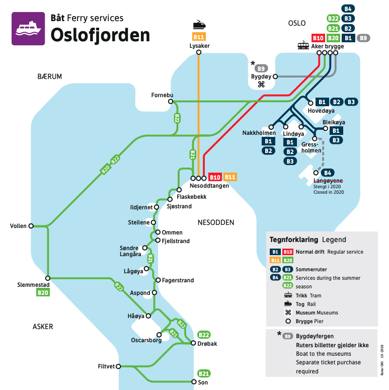 Si vous avez suivi, vous avez compris qu’Oslo se trouve au fond du Fjord. Dans ce même fjord, il y a d’autres villes, plus ou moins importantes ainsi que plusieurs iles. Progressivement, plusieurs offres de plus ou moins longue distance se sont développées pour relier ces dernières, ainsi que pour proposer des circuits touristiques. Mais de mon coté, j’ai envie de vous parler des ferries exploités par #Ruter, l’entreprise publique de transports. Parce que comme je vous le disais en introduction, ces bateaux totalement intégrés dans l’offre de transports publics, que l’on peut utiliser au quotidien avec un simple abonnement, ça me fascine !!!