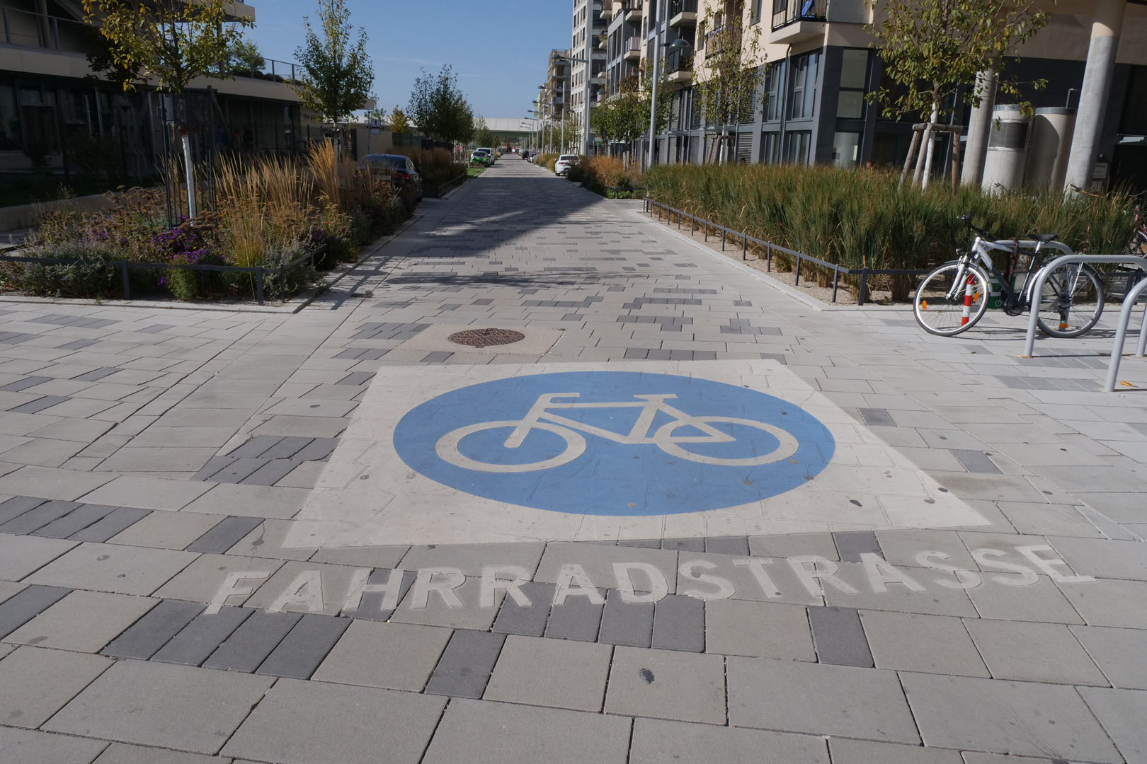 Et coté mobilité ? Une zone très bien desservie par le U-Bah, avec un temps de trajet vers le centre très raisonnable (24 minutes environ). Pour se déplacer dans la zone, et afin de répondre à l’objectif de 40% de part modale en mobilités actives, on fait place nette aux piétons et aux vélos. Avec des espaces publics très restrictifs pour l’automobile.